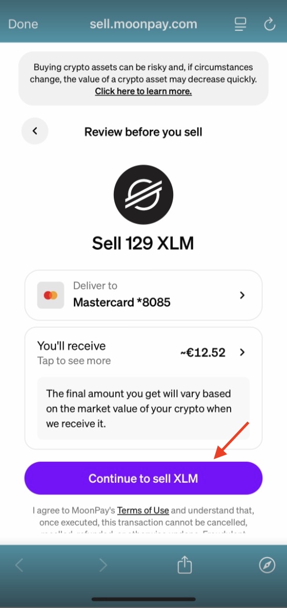Here are a few tips that may be of assistance when selling XLM or other crypto with MoonPay: