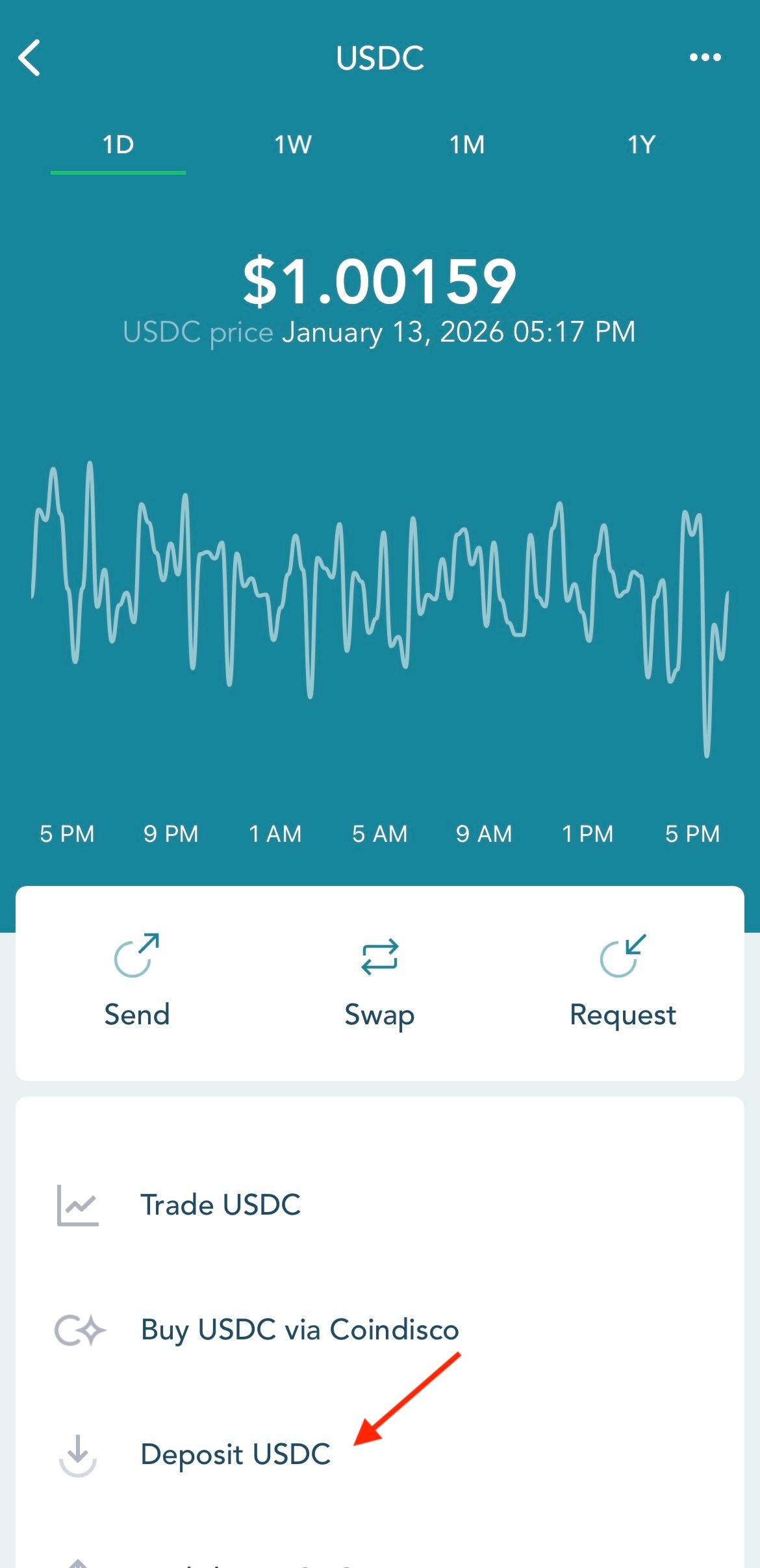 From the ‘Home’ screen on mobile apps or 'Assets' screen on the web > select yUSDC (issued by ultracapital.xyz) > tap 'Deposit yUSDC' > follow the instructions on the screen:
